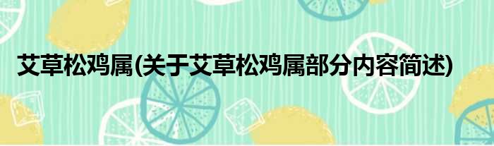 艾草松鸡属(关于艾草松鸡属部分内容简述)