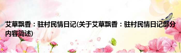 导读 大家好,今天小方来说说一篇关于艾草飘香:驻村民情日记,关于艾草飘香:驻村民情日记部分内容简述的文章,那么现在就为大家来简单介绍下,