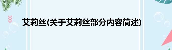 导读 大家好,今天小方来说说一篇关于艾莉丝,关于艾莉丝部分内容简述的文章,那么现在就为大家来简单介绍下,希望对各位小伙伴们有所帮助。
