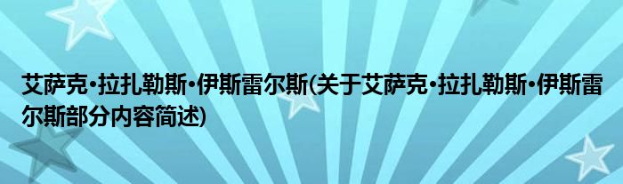 艾萨克·拉扎勒斯·伊斯雷尔斯(关于艾萨克·拉扎勒斯·伊斯雷尔斯部分内容简述)