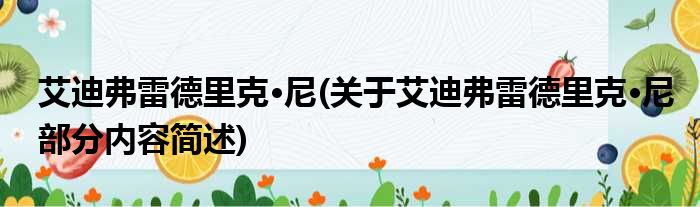 艾迪弗雷德里克·尼(关于艾迪弗雷德里克·尼部分内容简述)