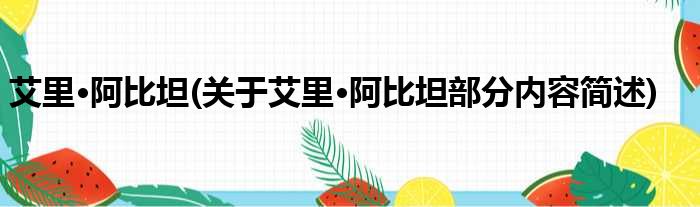 艾里·阿比坦(关于艾里·阿比坦部分内容简述)