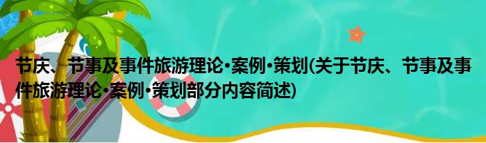 导读 大家好,今天小方来说说一篇关于节庆、节事及事件旅游理论·案例·策划,关于节庆、节事及事件旅游理论·案例·策划部分内容简述的文章,那