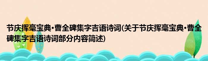 节庆挥毫宝典·曹全碑集字吉语诗词(关于节庆挥毫宝典·曹全碑集字吉语诗词部分内容简述)