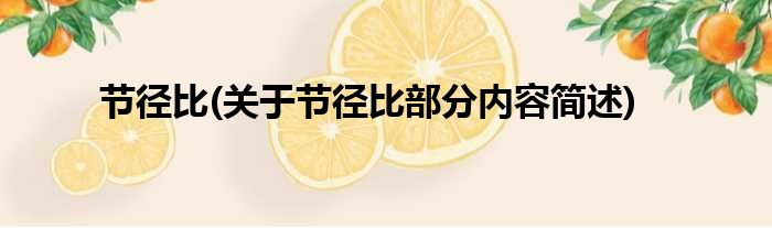 大家好,今天小方来说说一篇关于节径比,关于节径比部分内容简述的文章,那么现在就为大家来简单介绍下,希望对各位小伙伴们有所帮助。