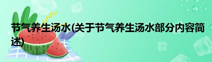 节气养生汤水(关于节气养生汤水部分内容简述)
