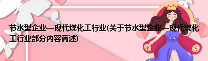 导读 大家好,今天小方来说说一篇关于节水型企业—现代煤化工行业,关于节水型企业—现代煤化工行业部分内容简述的文章,那么现在就为大家来简单