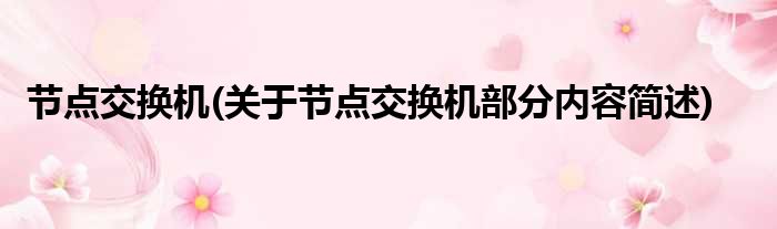 导读 大家好,今天小方来说说一篇关于节点交换机,关于节点交换机部分内容简述的文章,那么现在就为大家来简单介绍下,希望对各位小伙伴们有所帮