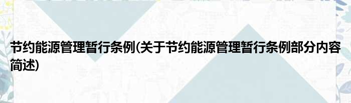 导读 大家好,今天小方来说说一篇关于节约能源管理暂行条例,关于节约能源管理暂行条例部分内容简述的文章,那么现在就为大家来简单介绍下,希望