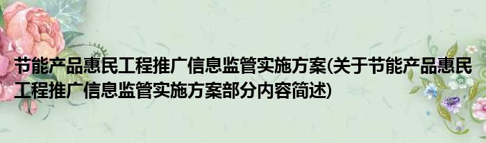 导读 大家好,今天小方来说说一篇关于节能产品惠民工程推广信息监管实施方案,关于节能产品惠民工程推广信息监管实施方案部分内容简述的文章,那