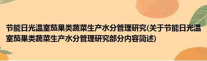 节能日光温室茄果类蔬菜生产水分管理研究(关于节能日光温室茄果类蔬菜生产水分管理研究部分内容简述)