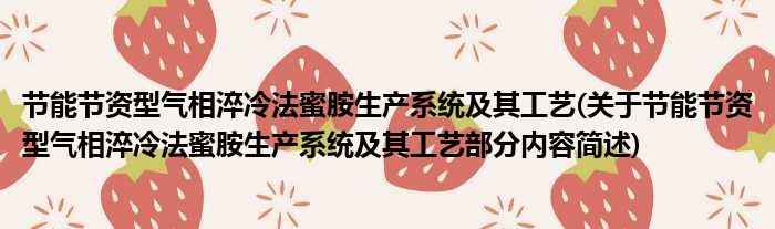 节能节资型气相淬冷法蜜胺生产系统及其工艺(关于节能节资型气相淬冷法蜜胺生产系统及其工艺部分内容简述)