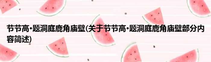 节节高·题洞庭鹿角庙壁(关于节节高·题洞庭鹿角庙壁部分内容简述)