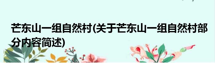 芒东山一组自然村(关于芒东山一组自然村部分内容简述)