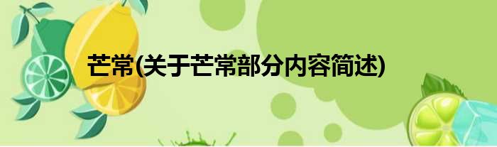 导读 大家好,今天小方来说说一篇关于芒常,关于芒常部分内容简述的文章,那么现在就为大家来简单介绍下,希望对各位小伙伴们有所帮助。