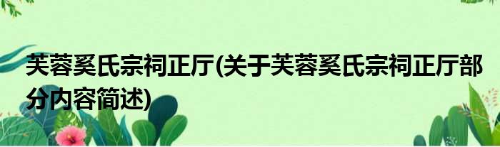 芙蓉奚氏宗祠正厅(关于芙蓉奚氏宗祠正厅部分内容简述)