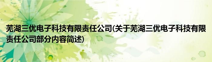 芜湖三优电子科技有限责任公司(关于芜湖三优电子科技有限责任公司部分内容简述)