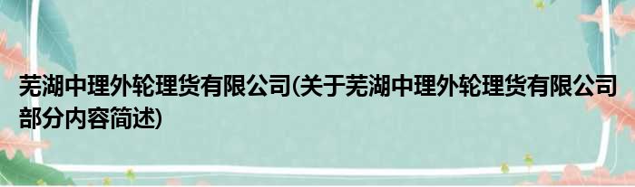 芜湖中理外轮理货有限公司(关于芜湖中理外轮理货有限公司部分内容简述)