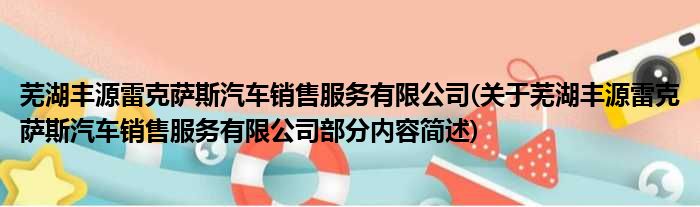 芜湖丰源雷克萨斯汽车销售服务有限公司(关于芜湖丰源雷克萨斯汽车销售服务有限公司部分内容简述)