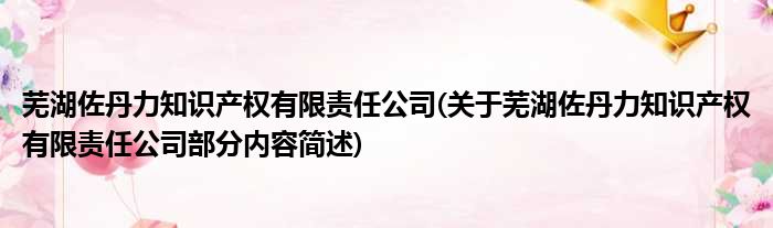 芜湖佐丹力知识产权有限责任公司(关于芜湖佐丹力知识产权有限责任公司部分内容简述)