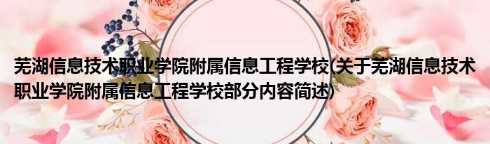 芜湖信息技术职业学院附属信息工程学校(关于芜湖信息技术职业学院附属信息工程学校部分内容简述)