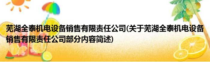 芜湖全泰机电设备销售有限责任公司(关于芜湖全泰机电设备销售有限责任公司部分内容简述)