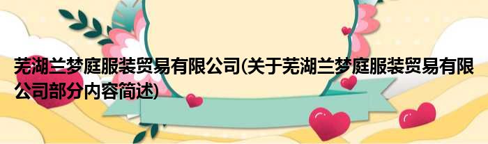 芜湖兰梦庭服装贸易有限公司(关于芜湖兰梦庭服装贸易有限公司部分内容简述)