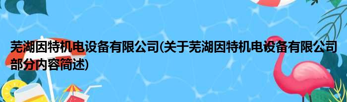 芜湖因特机电设备有限公司(关于芜湖因特机电设备有限公司部分内容简述)