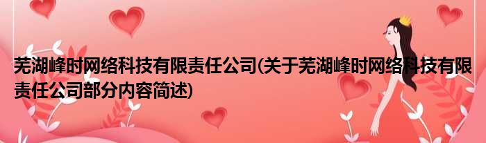 芜湖峰时网络科技有限责任公司(关于芜湖峰时网络科技有限责任公司部分内容简述)