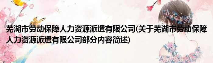 芜湖市劳动保障人力资源派遣有限公司(关于芜湖市劳动保障人力资源派遣有限公司部分内容简述)
