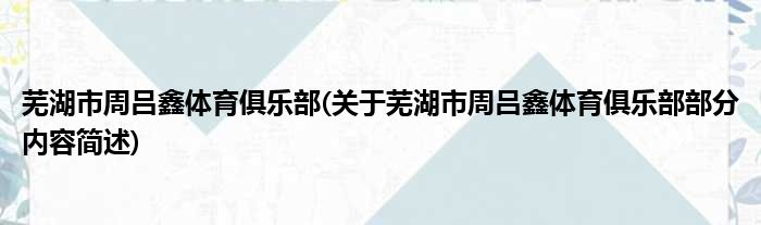 芜湖市周吕鑫体育俱乐部(关于芜湖市周吕鑫体育俱乐部部分内容简述)