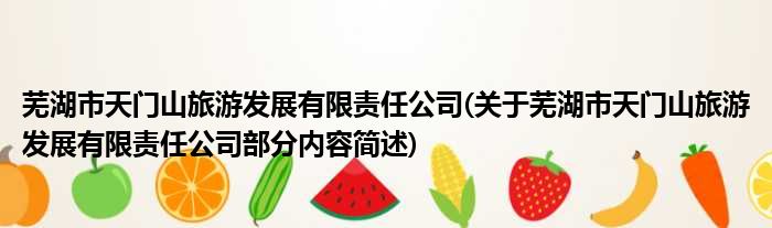 芜湖市天门山旅游发展有限责任公司(关于芜湖市天门山旅游发展有限责任公司部分内容简述)