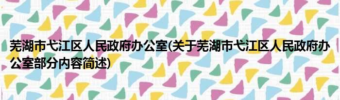 导读 大家好,今天小方来说说一篇关于芜湖市弋江区人民政府办公室,关于芜湖市弋江区人民政府办公室部分内容简述的文章,那么现在就为大家来简单