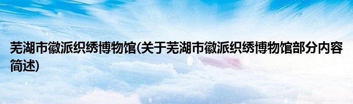 芜湖市徽派织绣博物馆(关于芜湖市徽派织绣博物馆部分内容简述)