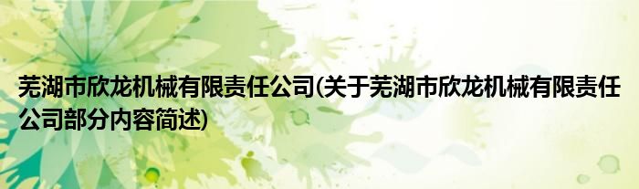 芜湖市欣龙机械有限责任公司(关于芜湖市欣龙机械有限责任公司部分内容简述)