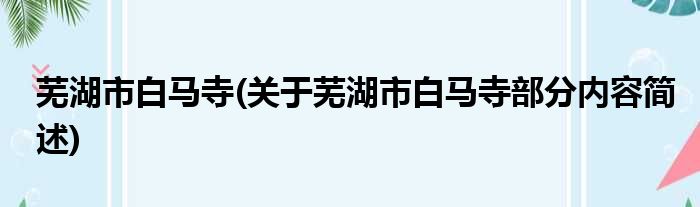 芜湖市白马寺(关于芜湖市白马寺部分内容简述)