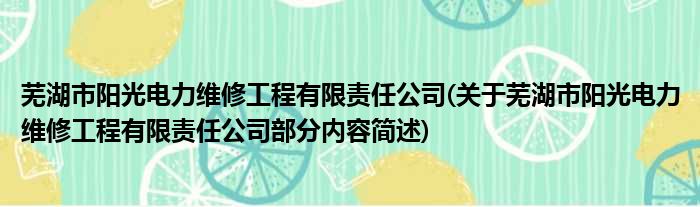 芜湖市阳光电力维修工程有限责任公司(关于芜湖市阳光电力维修工程有限责任公司部分内容简述)