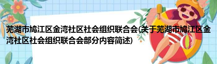 芜湖市鸠江区金湾社区社会组织联合会(关于芜湖市鸠江区金湾社区社会组织联合会部分内容简述)