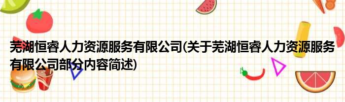 芜湖恒睿人力资源服务有限公司(关于芜湖恒睿人力资源服务有限公司部分内容简述)