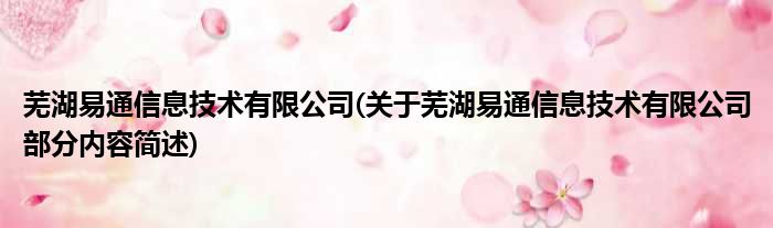 芜湖易通信息技术有限公司(关于芜湖易通信息技术有限公司部分内容简述)