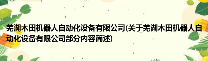 芜湖木田机器人自动化设备有限公司(关于芜湖木田机器人自动化设备有限公司部分内容简述)
