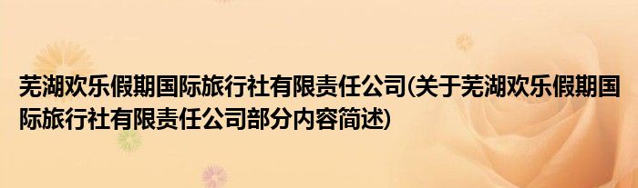 芜湖欢乐假期国际旅行社有限责任公司(关于芜湖欢乐假期国际旅行社有限责任公司部分内容简述)