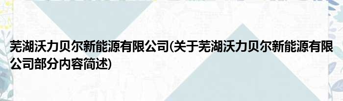 芜湖沃力贝尔新能源有限公司(关于芜湖沃力贝尔新能源有限公司部分内容简述)