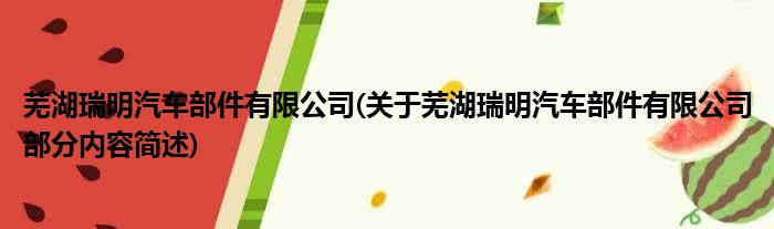 芜湖瑞明汽车部件有限公司(关于芜湖瑞明汽车部件有限公司部分内容简述)