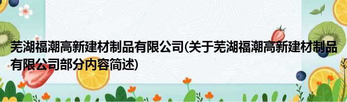 芜湖福潮高新建材制品有限公司(关于芜湖福潮高新建材制品有限公司部分内容简述)