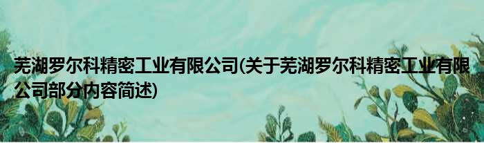 芜湖罗尔科精密工业有限公司(关于芜湖罗尔科精密工业有限公司部分内容简述)