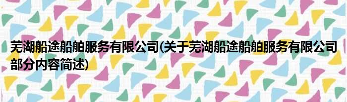 芜湖船途船舶服务有限公司(关于芜湖船途船舶服务有限公司部分内容简述)