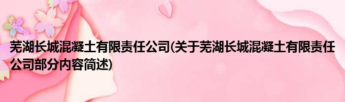 芜湖长城混凝土有限责任公司(关于芜湖长城混凝土有限责任公司部分内容简述)