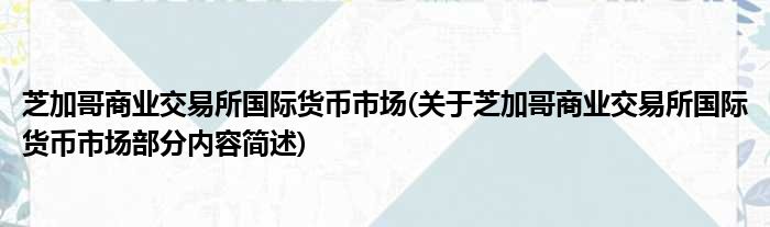 芝加哥商业交易所国际货币市场(关于芝加哥商业交易所国际货币市场部分内容简述)