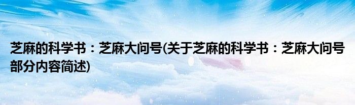 导读 大家好,今天小方来说说一篇关于芝麻的科学书:芝麻大问号,关于芝麻的科学书:芝麻大问号部分内容简述的文章,那么现在就为大家来简单介绍